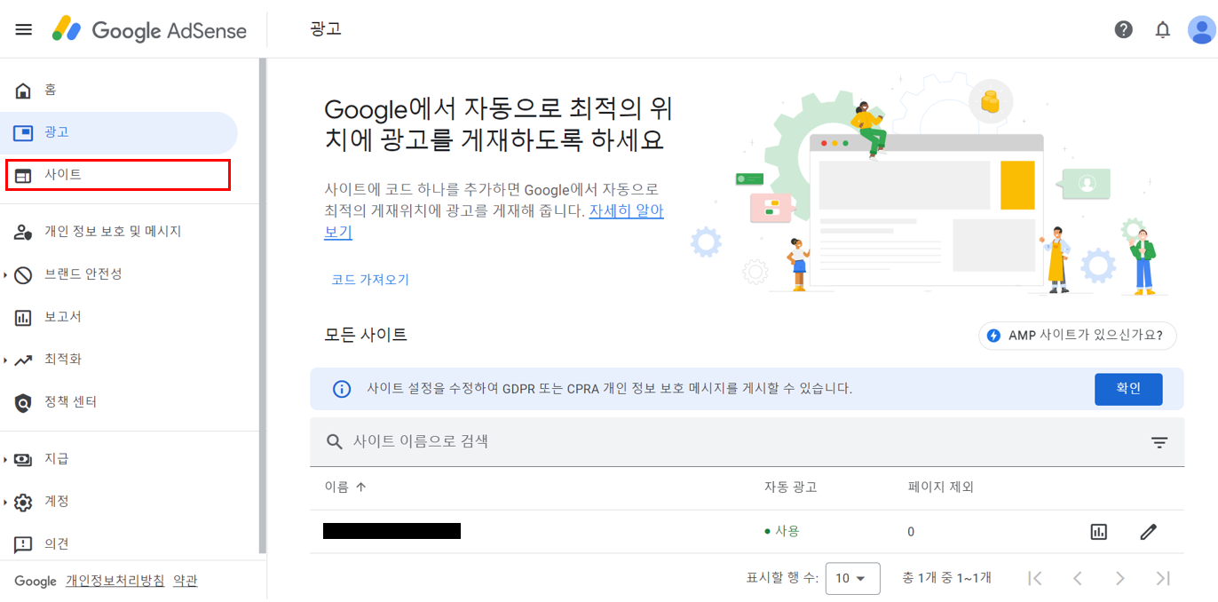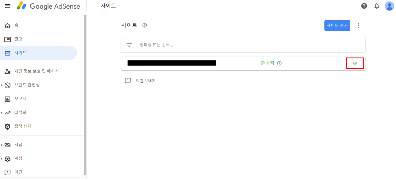 그러면 구글 애드센스를 승인 받은 도메인 주소가 나타납니다.