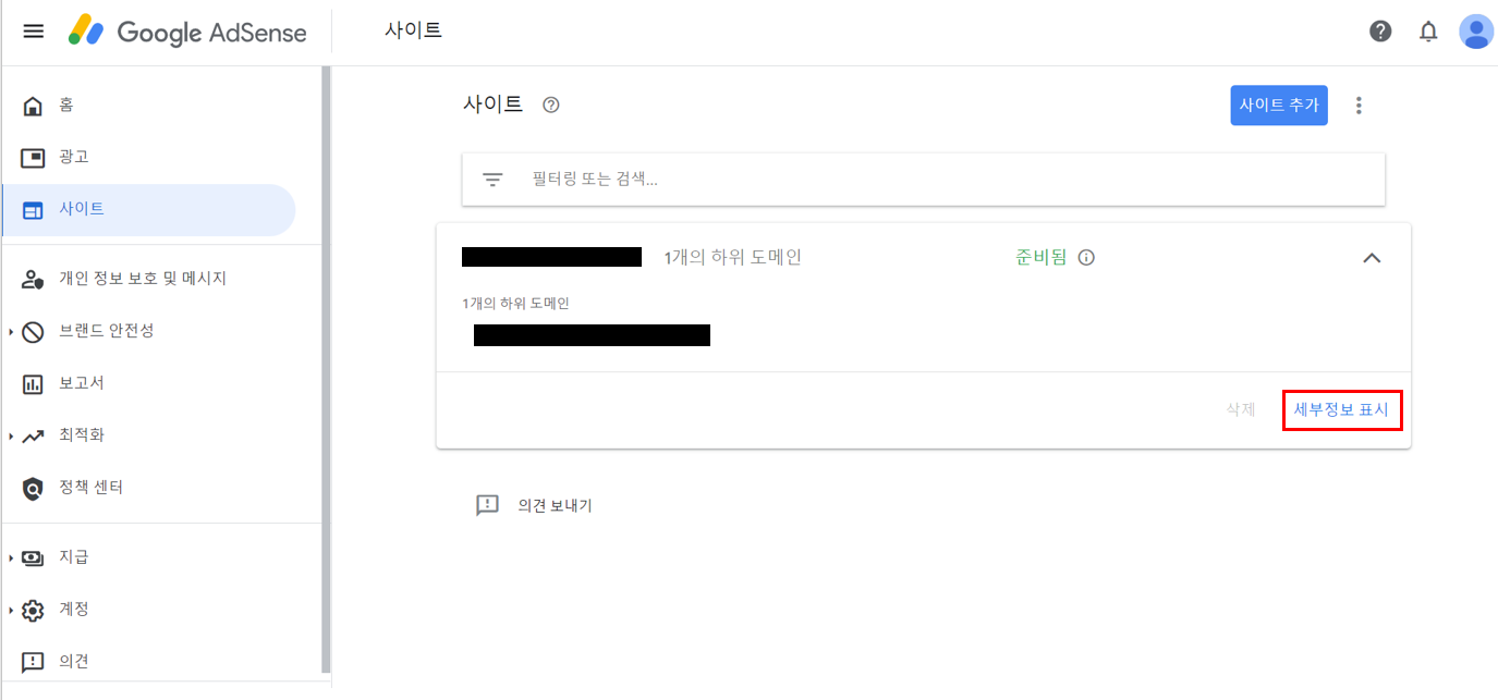 여기까지 구글 애드센스에서의 하위 도메인까지 추가 완료입니다.