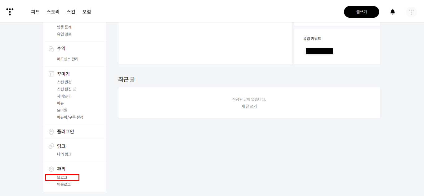 그리고 각자의 개인 티스토리 블로그 관리 - 블로그로 이동합니다.