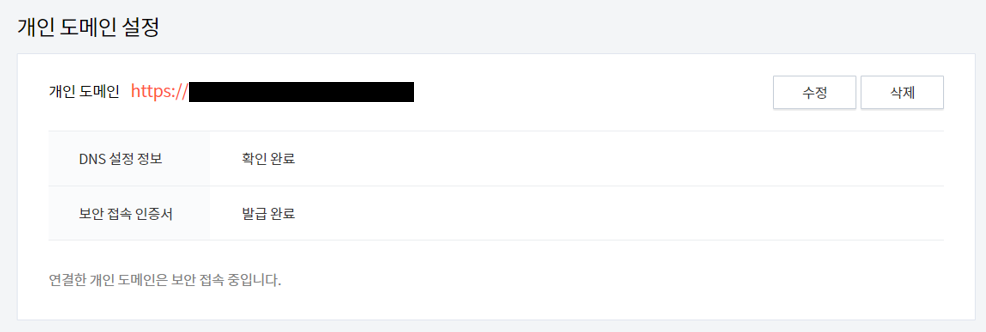 개인 도메인 설정값에 구글 애드센스에 등록한 하위 도메인을 넣어줍니다.