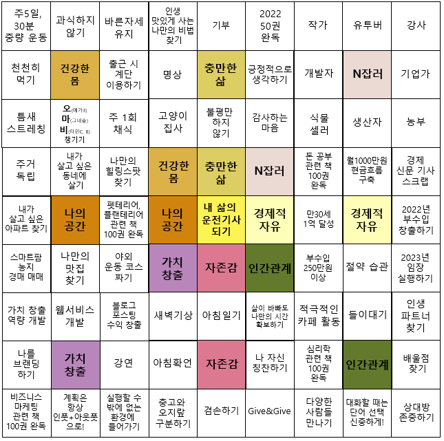 아래는 2022 ~ 2023 나의 인생 만다라트이다.