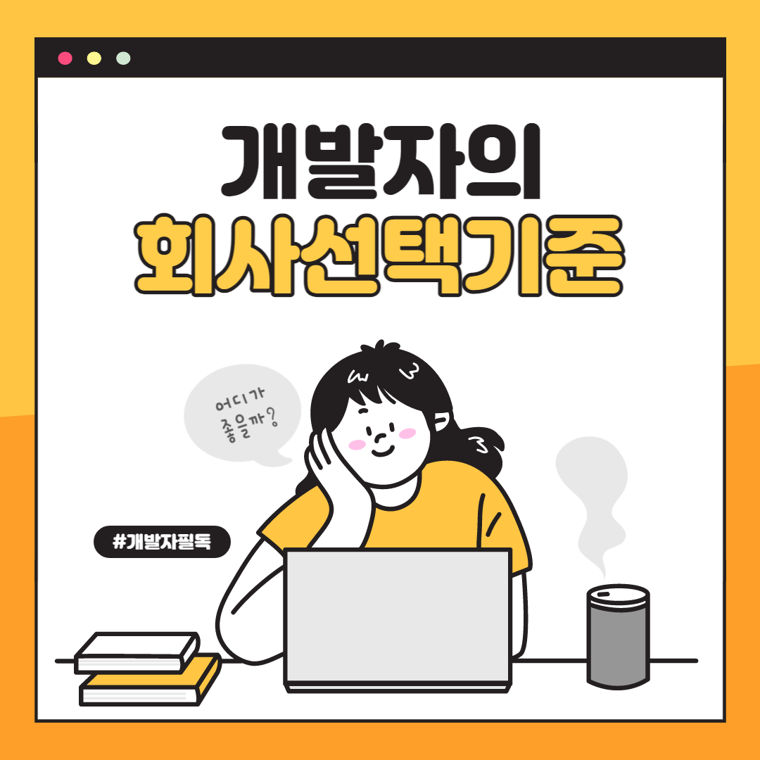 개발 직무로 취업을 하거나 이직할 때 회사 고르는 법을 정리해봤습니다. 취업이나 이직 시 도움이 됐으면 좋겠습니다 :) 1. 회사를 선택하는 기준 이 회사를 발판 삼는다면 나의 백엔드 커리어 형성에 도움이 된다. 이 회사에 내가 평소에 존경하는 개발자가 있고 그 분의 지식/경험을 전수 받고 싶다. 평소에 좋아하는 서비스였는데 이 회사에 들어가면 해당 서비스 개발에 참여할 수 있다. 취업/이직 시 회사를 고를 때 위 기준들에 부합하는 회사들을 위주로 선정한다면 자기소개서나 면접 시 '왜 우리 회사에 지원하셨나요?'라는 질문에 당황하지 않을 수 있습니다. 더욱이, 회사에서 힘든 일이 있을 때 포기하지 않고 꾸준히 업무를 해나갈 수 있는 원동력이 될 수 있습니다. 2. 회사를 선택할 때 중요한 포인트 이 회사..